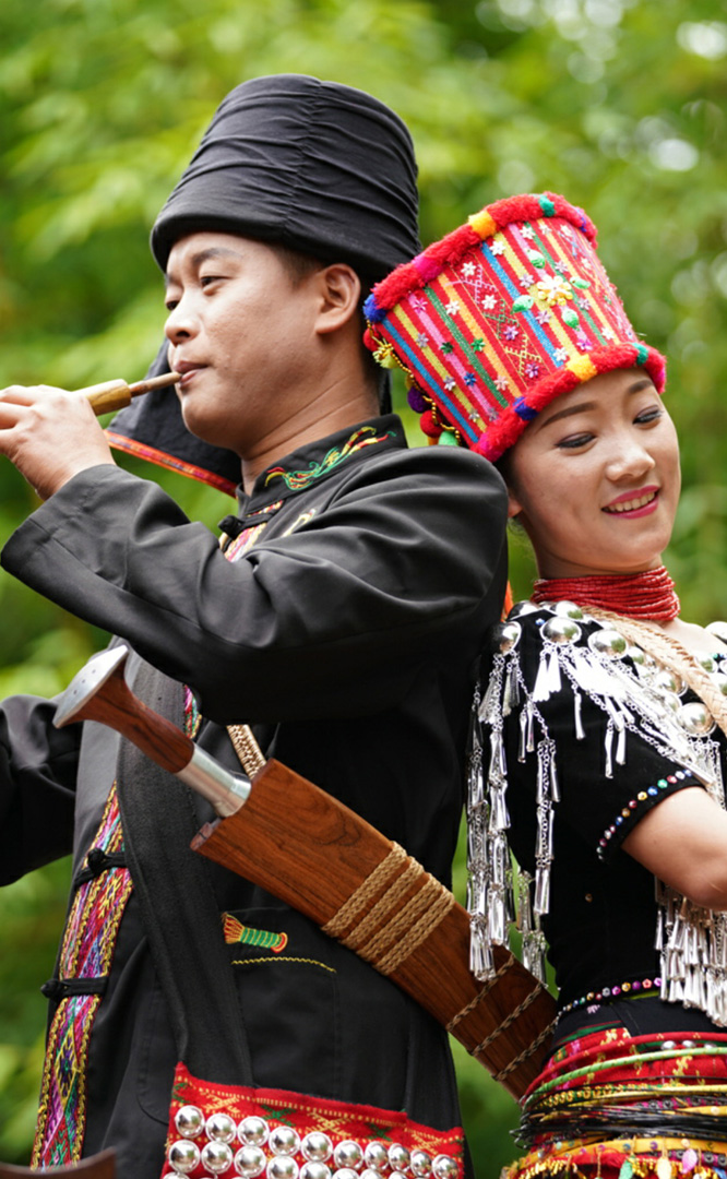 阿昌族是云南省的獨有民族之一,主要分布在德宏州的隴川、梁河、潞西等縣,人口3.5萬,民間多信奉鬼神、祖先的原始宗教,一些地區(qū)也信仰小乘佛教。阿昌族為氐羌后裔,其先民公元2世紀(jì)即進(jìn)入滇西北怒江流域,其中一部分約在13世紀(jì)定居于現(xiàn)隴川縣戶撒壩子,另一部分其后定居于梁河地區(qū)。阿昌族工匠生產(chǎn)的“戶撒刀”有長刀、短刀和藏刀等,品種繁多,精致美觀,品質(zhì)優(yōu)良,歷來行銷于省內(nèi)、川藏等地及緬甸等國。阿昌族寨以一幢合...